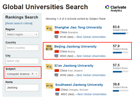 10月30日,在最新发布的2019年度US News世界大学排名(Best Global Universities Rankings)中,我校计算机科学学科排名世界第69名,我国内地共有49所高校的计算机科学学科进入前200名,我校计算机科学学科在内地高校中排第16名。