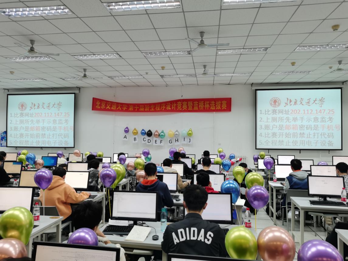 2021年12月12日,由北京交通大学新生程序设计竞赛组委会、北京交通大学蓝桥杯选拔赛组委会主办、计算机与信息技术学院承办的我校第十届新生程序设计竞赛暨蓝桥杯选拔赛现场赛正式拉开帷幕,本次比赛首次采用了两赛合一、同一榜单、同场竞技、分开排名的比赛模式。新生程序设计竞赛是我校程序设计类具有影响力的传统赛事,迄今位置已连续举办九届。该赛事面向全校低年级同学,包括计算机学院、软件学院、詹天佑学院的21级新同学和其他学院20、21级的本科学生均可报名参赛。蓝桥杯选拔赛则面向全校所有的本科同学,旨在选拔我校参加“第十三届蓝桥杯全国软件和信息技术专业人才大赛”的参赛选手。