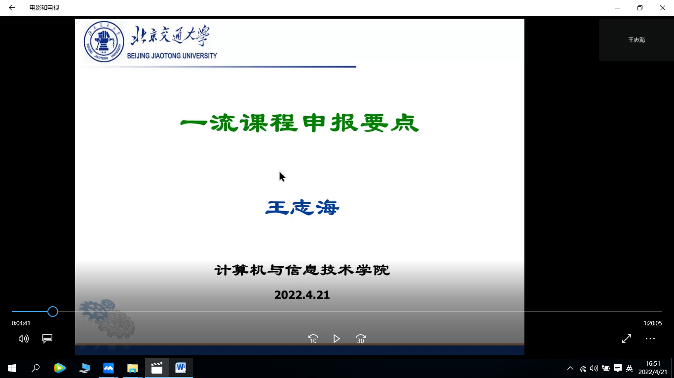 4月21日下午,计算机与信息技术学院教师发展分中心成功举办“国家级一流本科课程申报经验交流会”。来自全校的38位教师参加了本次交流活动。计算机学院首批国家级一流本科课程《数据结构》负责人王志海教授,系统介绍了一流课程申报应当注意的要点及相关事项,特别是平时工作多记录多留底、经常参加教学交流会议、邀请专业公司拍摄“说课”等心得体会。电气学院首批国家级一流本科课程《电机学》负责人刘慧娟教授,则从一流本科课程建设与申报的过程视角出发,从通知文件精神研读领会、申请表格与教学材料梳理提炼、课程建设历程重温及成果积累升华等多重维度分享了申报获批经验。