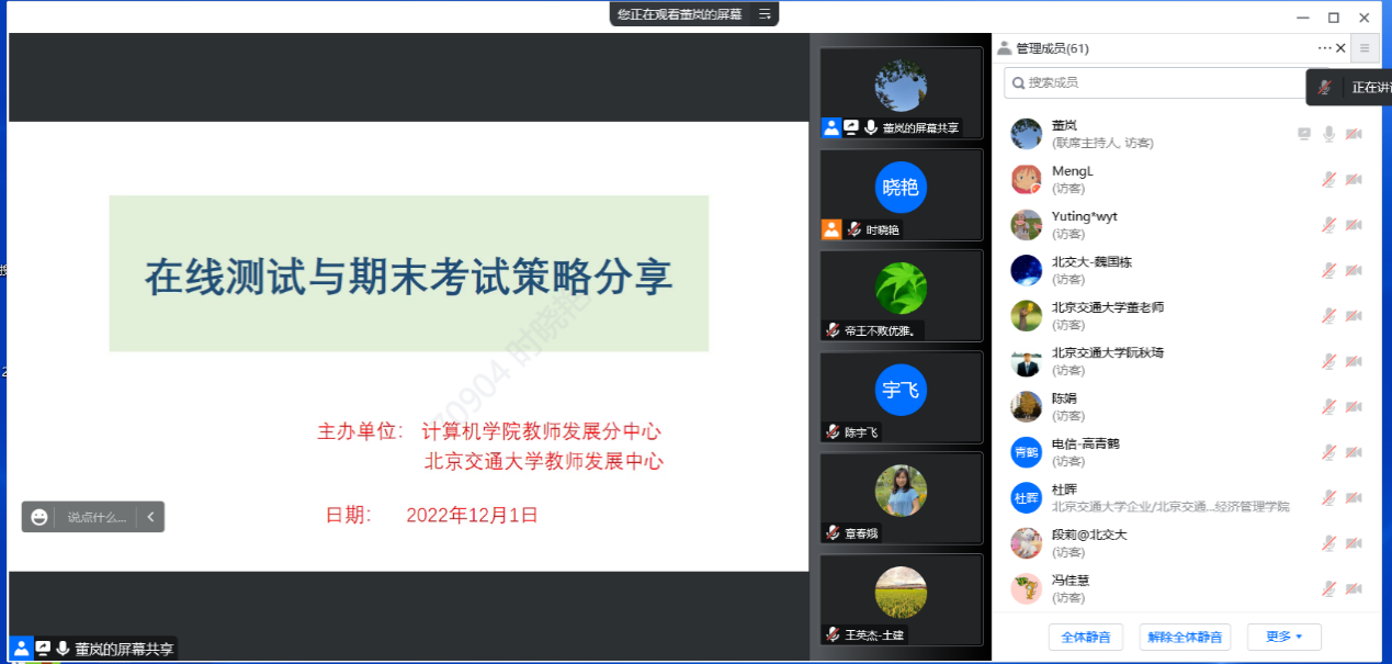 经过本次会议的学习和交流,老师们对于如何使用课程平台和雨课堂实施线上考试,如何分考场进行监考,如何更好地防止作弊行为有了更多的思路和解决办法,对保障我院期末线上考试质量起到了非常重要的作用。
