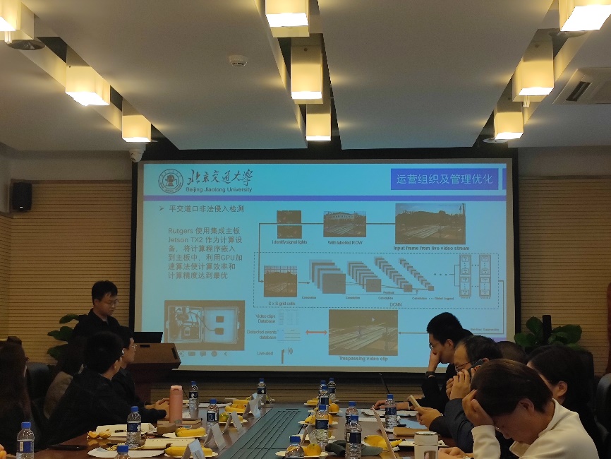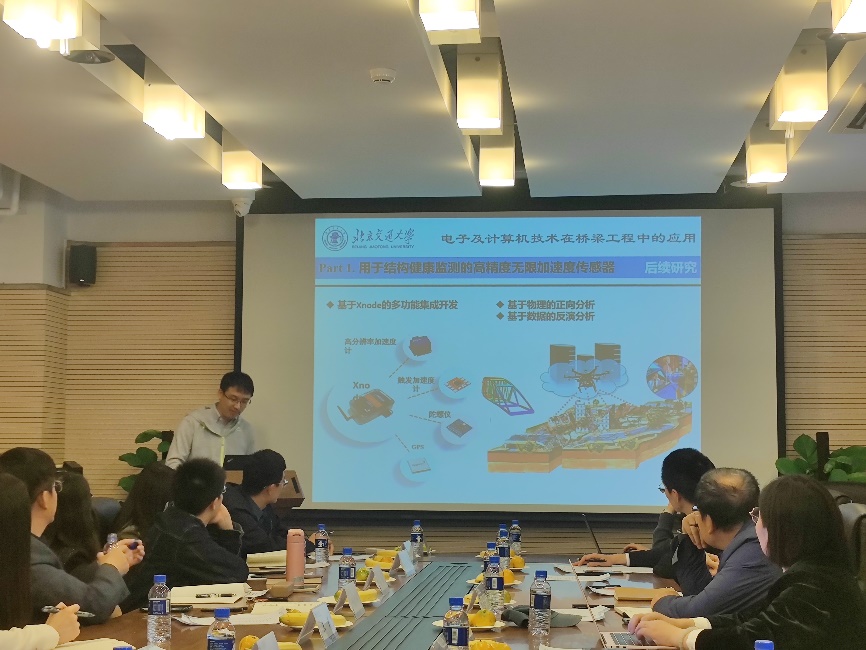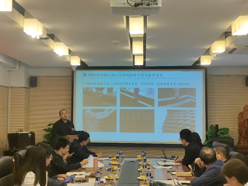 土建学院建筑工程系副主任王萌、地下工程系副主任金大龙、实验中心副主任韩松、智能建造专业负责人王娟、桥梁工程系朱力、道铁系王子甲、朱亚迪分别对课题组在交通基础设施检测评估、土压平衡盾构渣土信息智能检测设备研发、3D打印混凝土建造和文物建筑材料识别、智能建造和古建筑保护、电子及计算机技术在桥梁工程中的应用以及城市轨道交通等方面的相关研究背景及研究成果进行介绍与分享,重点阐述了研究中存在的亟待解决的智能化技术难题,表达土建学院研究团队与计算机学院合作解决视觉技术应用、空间数据处理、数据安全及软硬件研发中现存问题的迫切意愿。